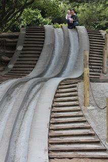 On Thursday, went to Golden Gate Park and enjoyed the children's playground area. They have a historic concrete slide that was retained from the old playground built in the late 1800s.